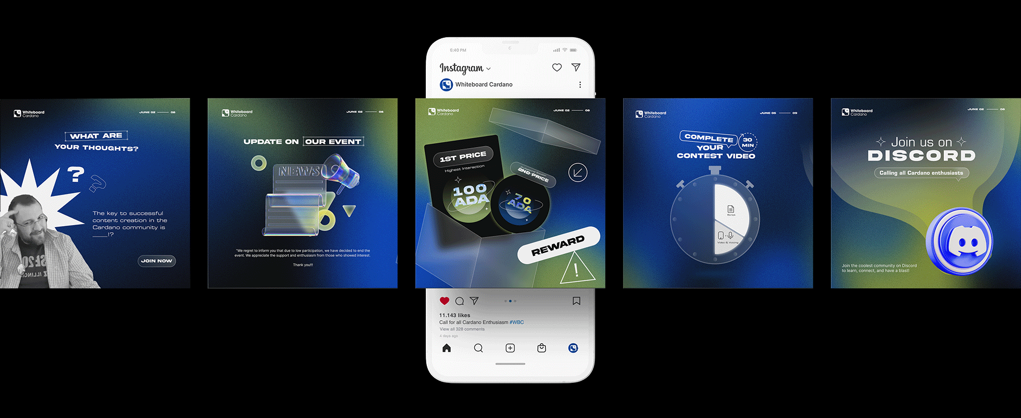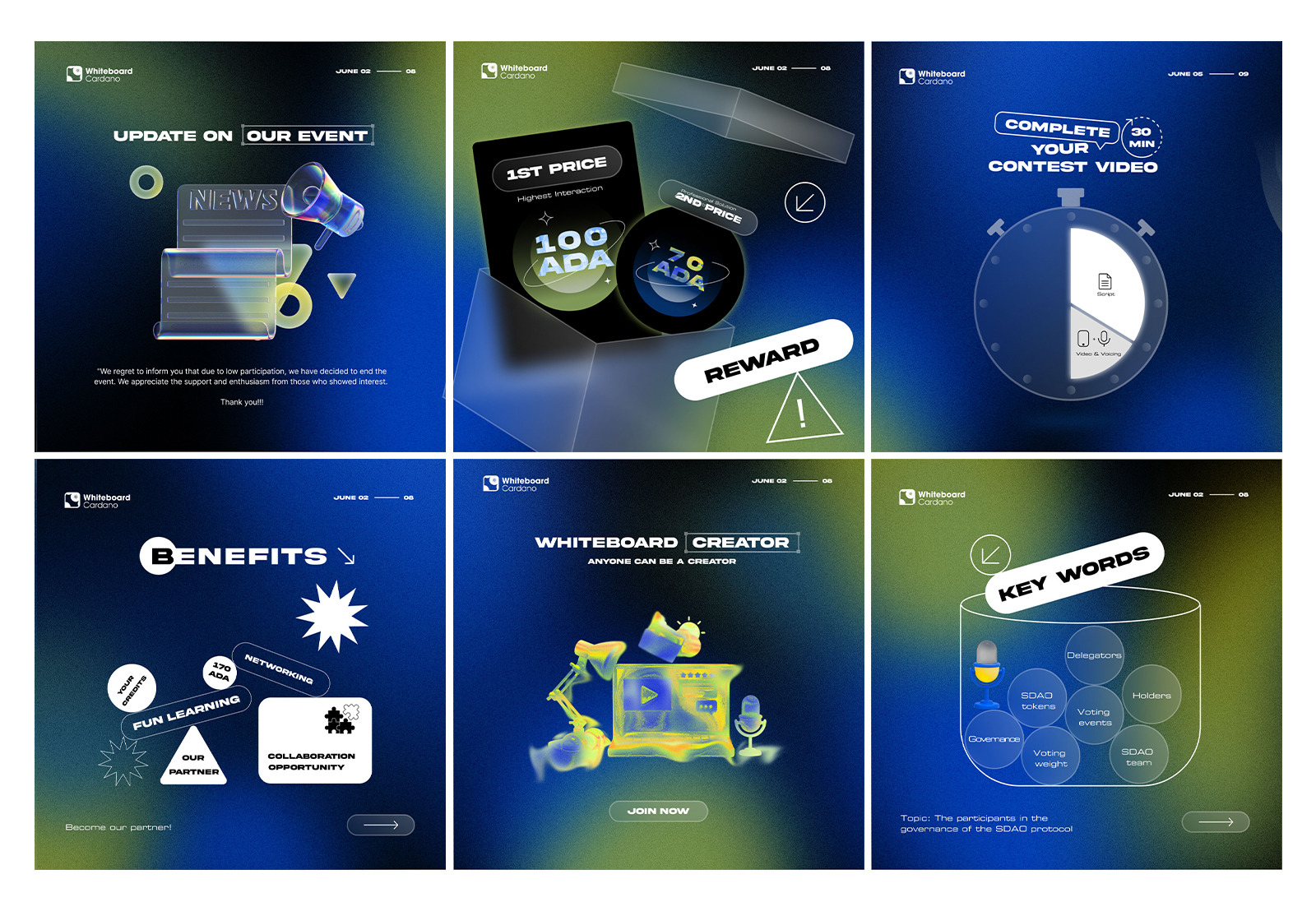 Whiteboard Creator is an event for the Cardano community. Featuring a modern, glassmorphic design to captivate blockchain and Web3 enthusiasts and symbolize innovation in the space. This design symbolizes transparency and innovation in the blockchain space.
